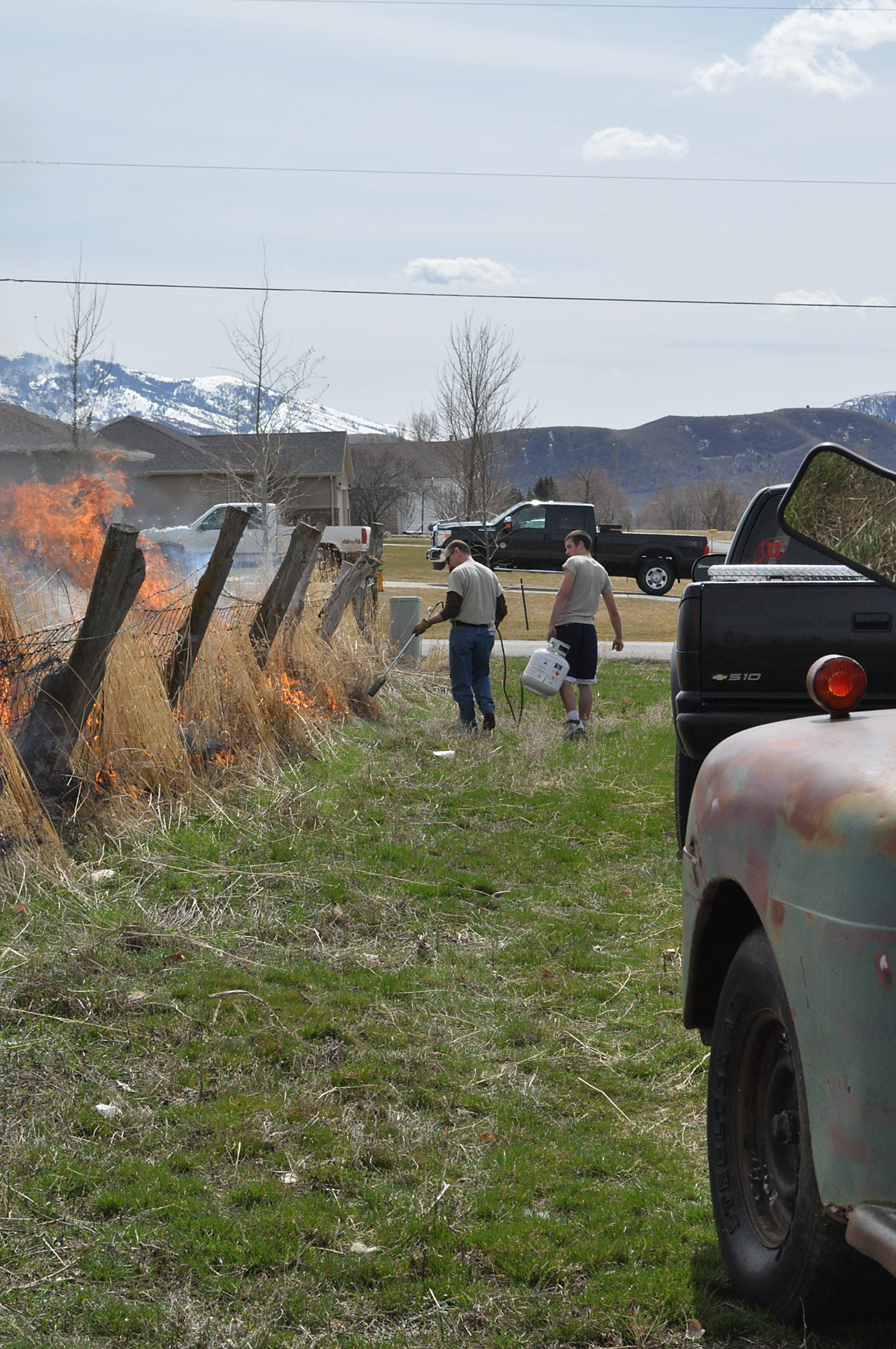 Burning the weeds, leaving the fence posts, just like you oughta!
