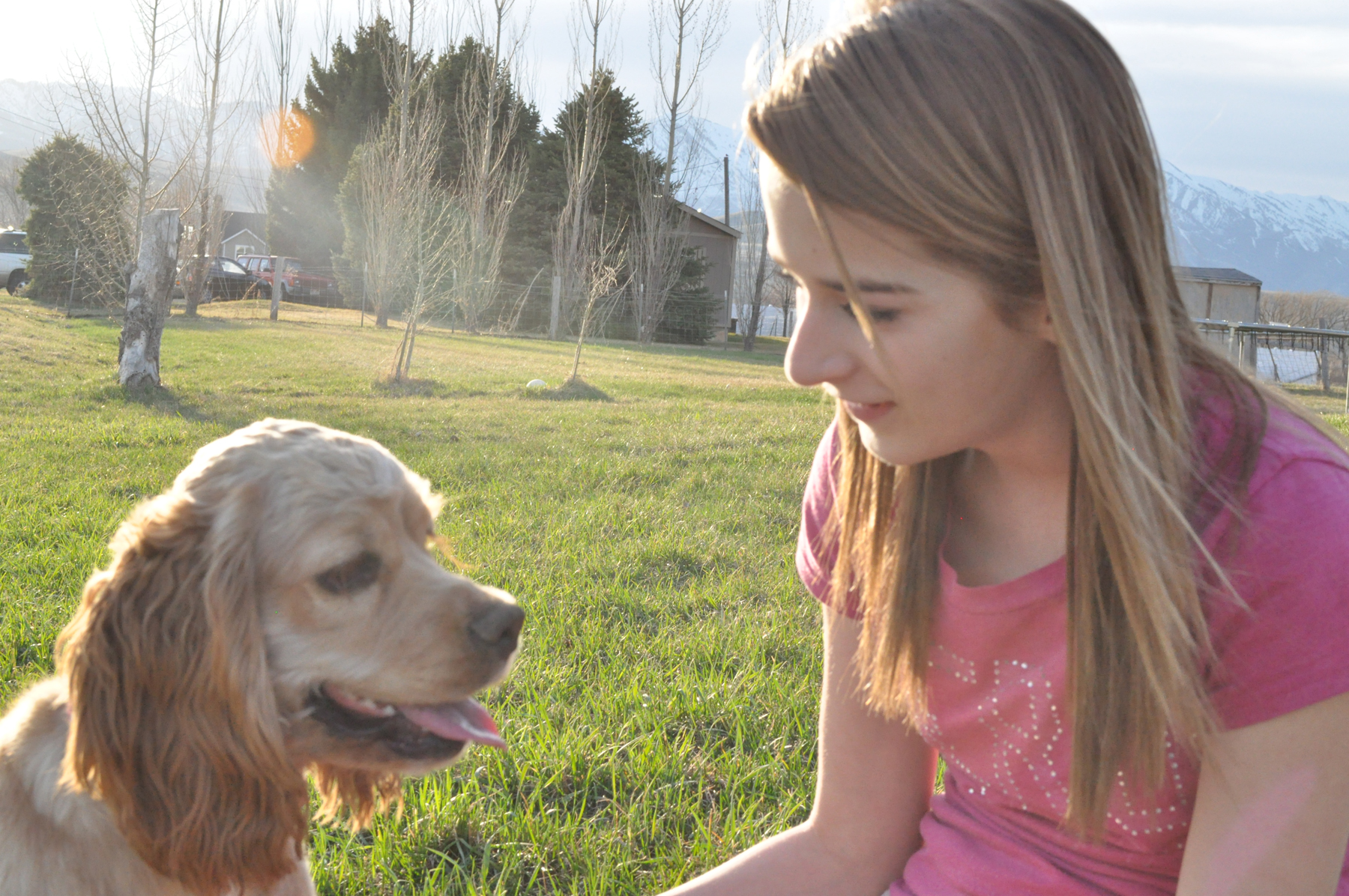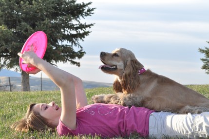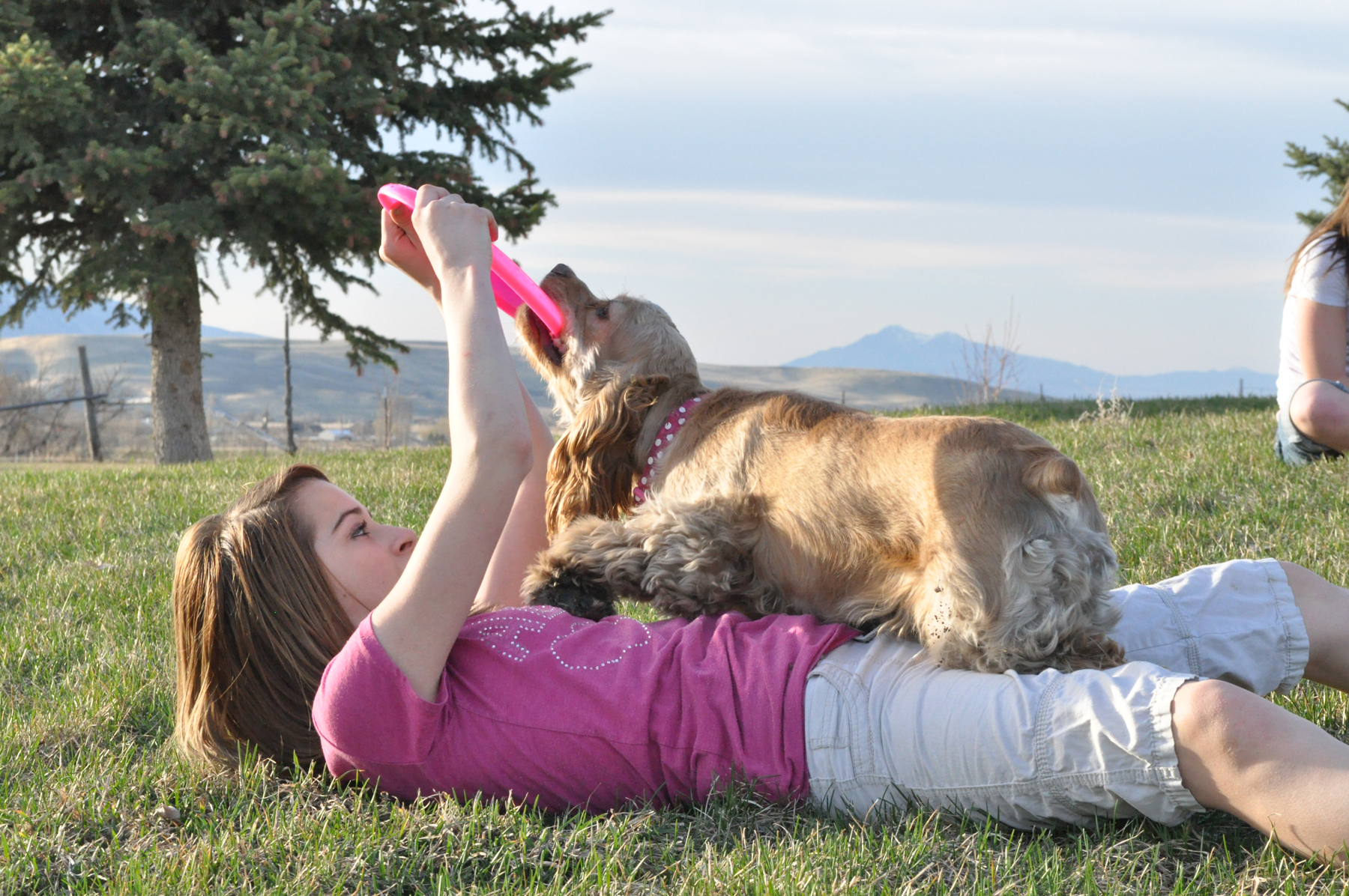 Meanwhile, the saner members of the family (that would be the girls), along with my daughter’s friend, spent most of our time out front where the air was clearer, putting together the trampoline and playing with Lucy (aka Lucifer, depending on how she’s behaving), our Cocker Spaniel.