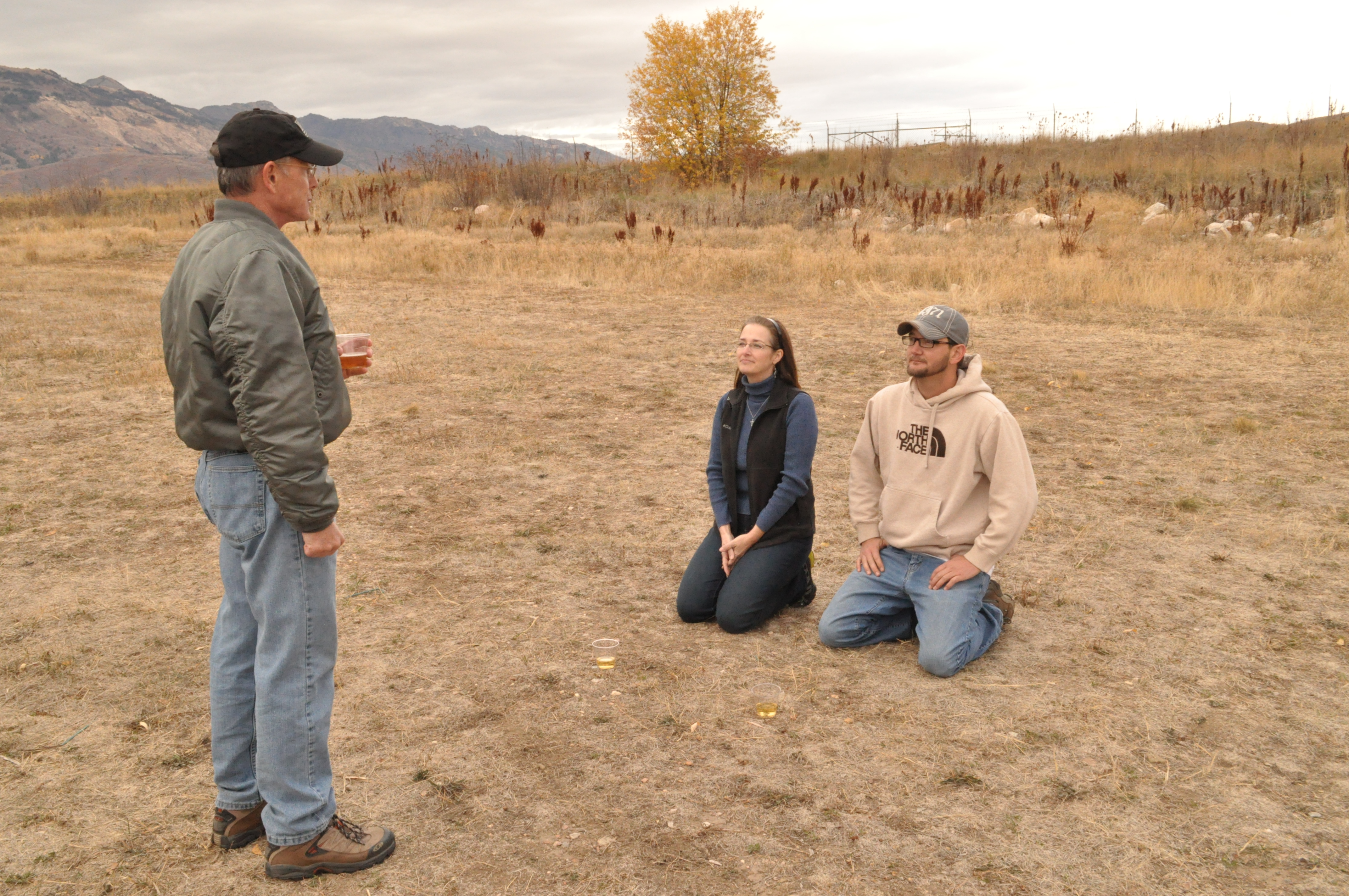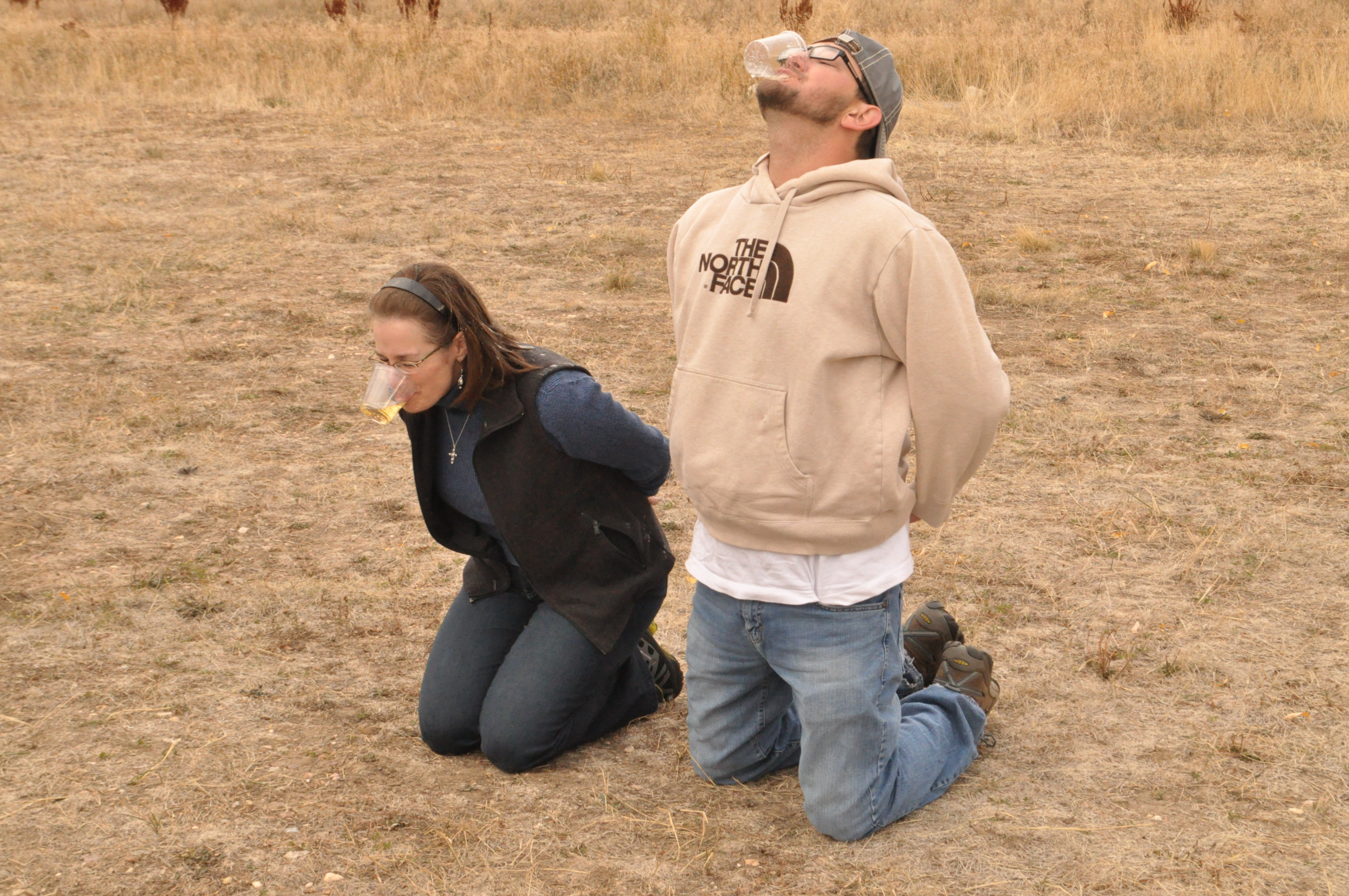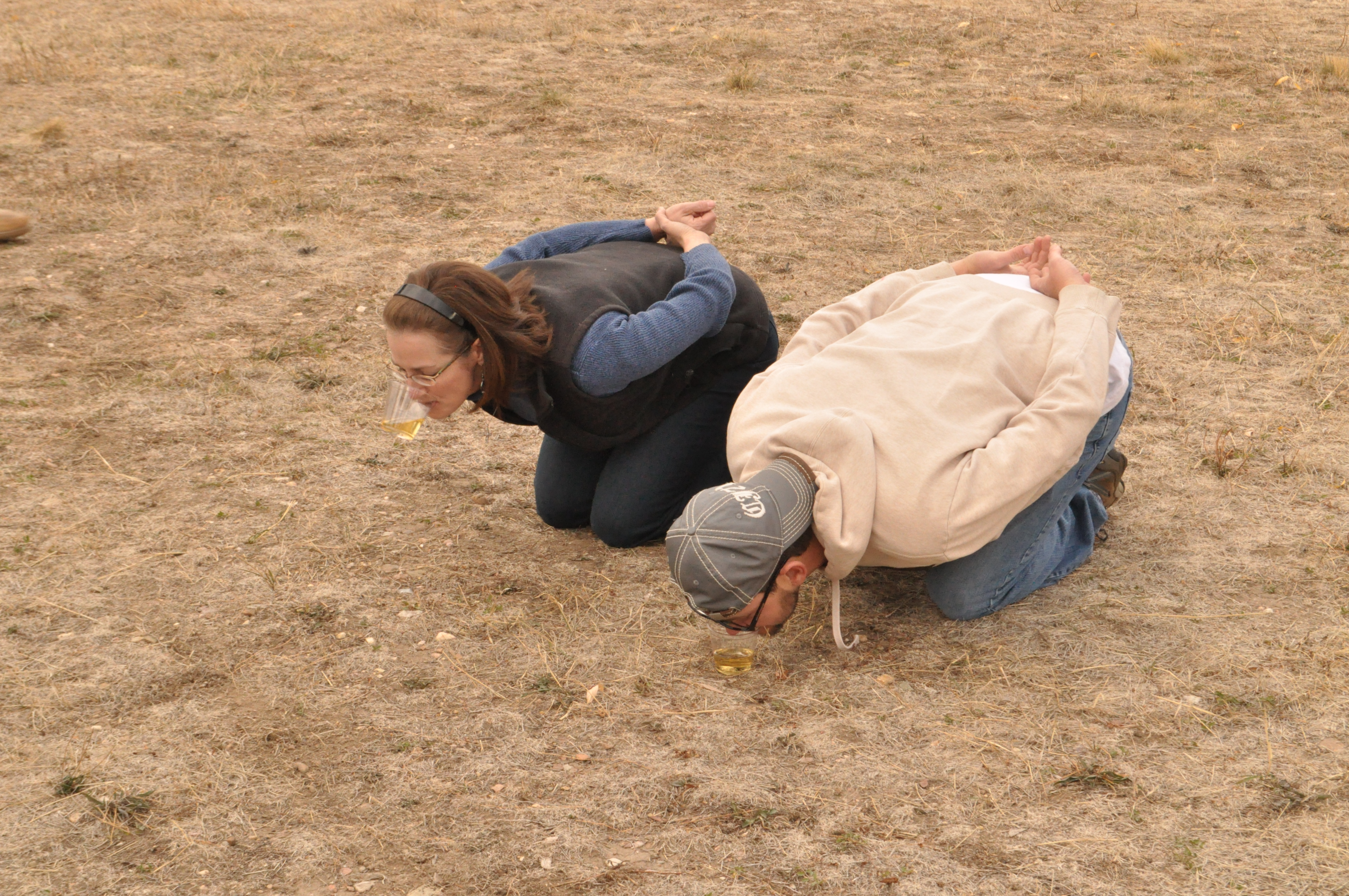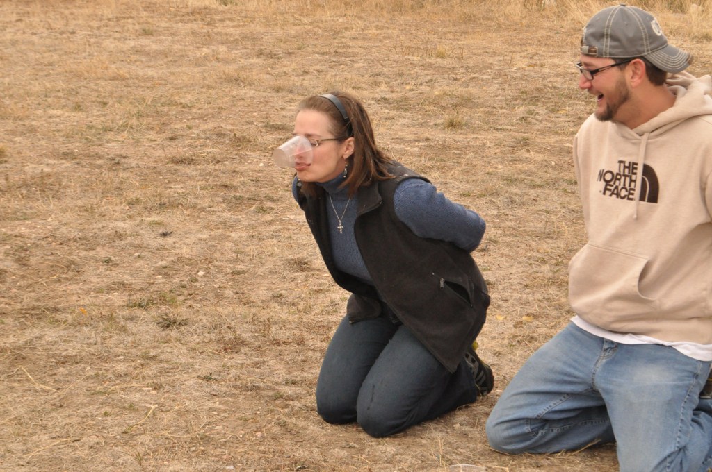 After the fascinating history (I love history, so I could have listened all day!), we were told to get down on our knees for the recitation of the beautiful balloonist’s prayer, which I shared on Monday’s post. Our solo cups of champagne were then placed in front of us on the ground, and we were instructed to put our hands behind our back, pick them up in our mouths, and drink them.